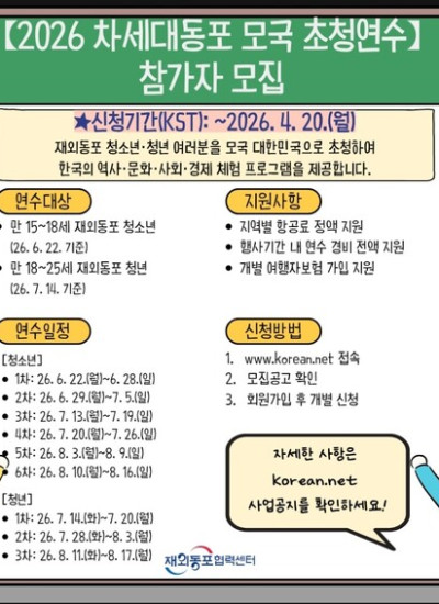 “모국에서 찾는 뿌리와 미래”… ‘2026 차세대동포 모국 초청연수’ 참가자 모집