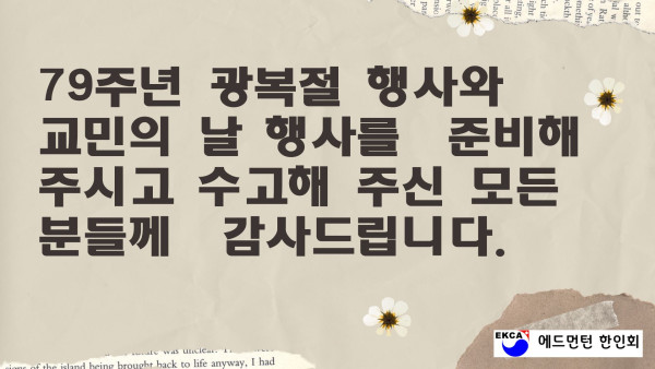2024 8.15 광복절 기념식 및 교민의 날 행사 작성자 정보 운영자 작성 작성일 2026.04.11 23:14 컨텐츠 정보 60 조회 목록 본문 SNS 공유 관련자료 링크 http://www.edmontonkorean.org/new/2024-8-15-%ea%b4%91%eb%b3%b5%ec%a0%88-%ea%b8%b0%eb%85%90%ec%8b%9d-%eb%b0%8f-%ea%b5%90%eb%af%bc%ec%9d%98-%eb%82%a0-%ed%96%89%ec%82%ac/ 16 회 연결 댓글 0 등록된 댓글이 없습니다. 로그인한 회원만 댓글 등록이 가능합니다. 목록