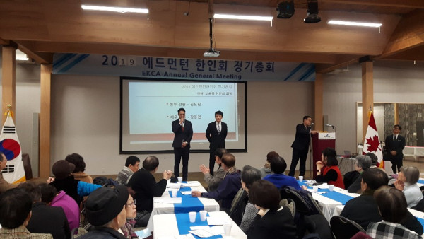 에드먼턴 한인회(회장:조용행)는 지난 2월 23일 오전 11시부터 한인회관(9636-105A Ave) 대강당에서 2019년도 정기총회를 개최하였다. 개회시간이 가까이 다가올수록 더욱 늘어나는 참가 회원들때문에 약 15분간 지연된 총회는 11시 15분 의사정족수를 훨씬 넘는 130명을 계수한 후 조용행 총회의장의 개회선언으로 시작되었다.