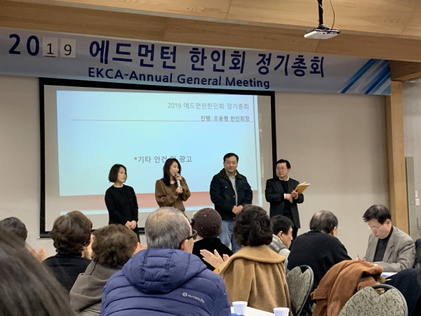 안정순 이사, 이강택 이사, 그리고 임다영 이사가 이번 정기총회에서 선출된 보선이사들인데 세분 공히 현재 에드먼턴 한인회가 절실히 필요로 하는 젊은이들로 회원들의 많은 관심과 지지를 받았다. 이로써 에드먼턴 한인회 제25대 이사회는 총회에서 선출된 정중호 이사장을 필두로 권영애,김화규, 노웅규,민한길,박장희,박정하,심정희,양남규,우명순,유승길 총 11명의 이사들과 회칙에서 정한 총 5명의 자동이사, 조용행 한인회장, 염진성 직전한인회장,전옥자 노인회장,김미영 여성회장,김성렬 실협회장등 총 16명의 이사에 이번 총회 보선된 세명의 이사가 더해져 총 19명의 이사로 운용되게 되었다. ( 19.2 Officers Members of Board: The President and immediate Past President shell be members of the Board of Directors. 19.3 Indirectly Elected Directors: Directors not elected directly as Directors by the members at a General Annual Meeting shall include, President of the Korean Senior Citizen Society of Edmonton, President of the Korean Businessmen’s Association and President of The Edmonton Korean Canadian Women’s Association.)