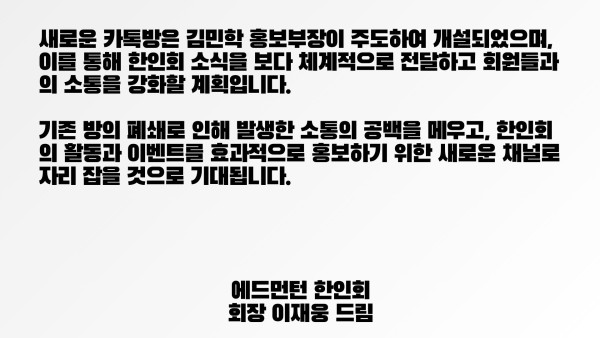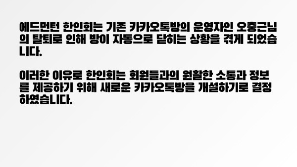 에드먼턴 한인회 오픈 채팅방 개설 작성자 정보 운영자 작성 작성일 2026.04.11 22:31 컨텐츠 정보 58 조회 목록 본문 SNS 공유 관련자료 링크 http://www.edmontonkorean.org/new/%ec%97%90%eb%93%9c%eb%a8%bc%ed%84%b4-%ed%95%9c%ec%9d%b8%ed%9a%8c-%ec%98%a4%ed%94%88-%ec%b1%84%ed%8c%85%eb%b0%a9-%ea%b0%9c%ec%84%a4/ 15 회 연결 댓글 0 등록된 댓글이 없습니다. 로그인한 회원만 댓글 등록이 가능합니다. 목록